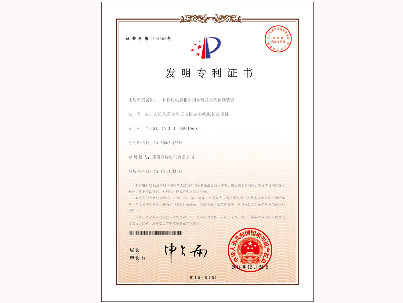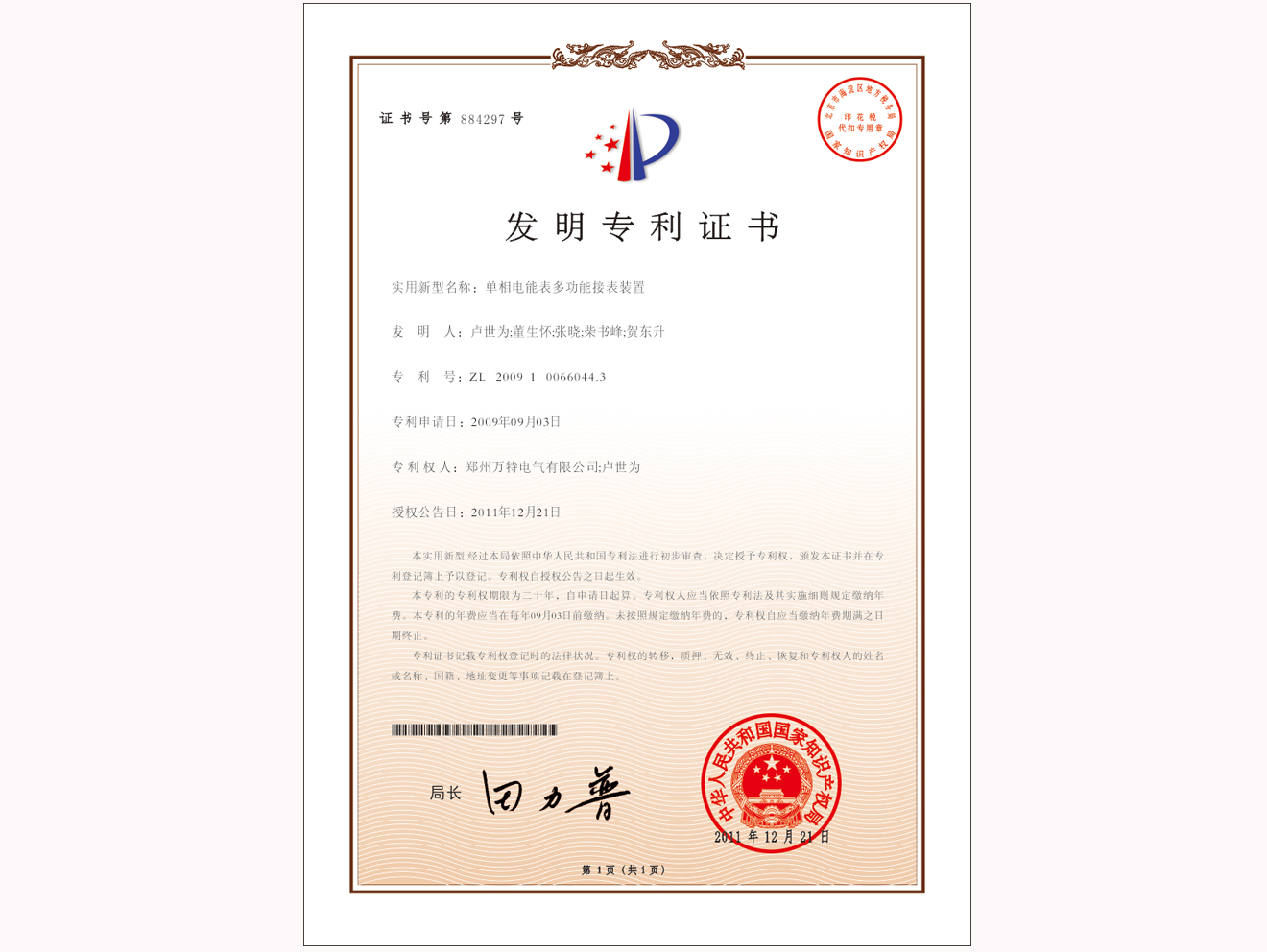 公司實用新型專利證書
