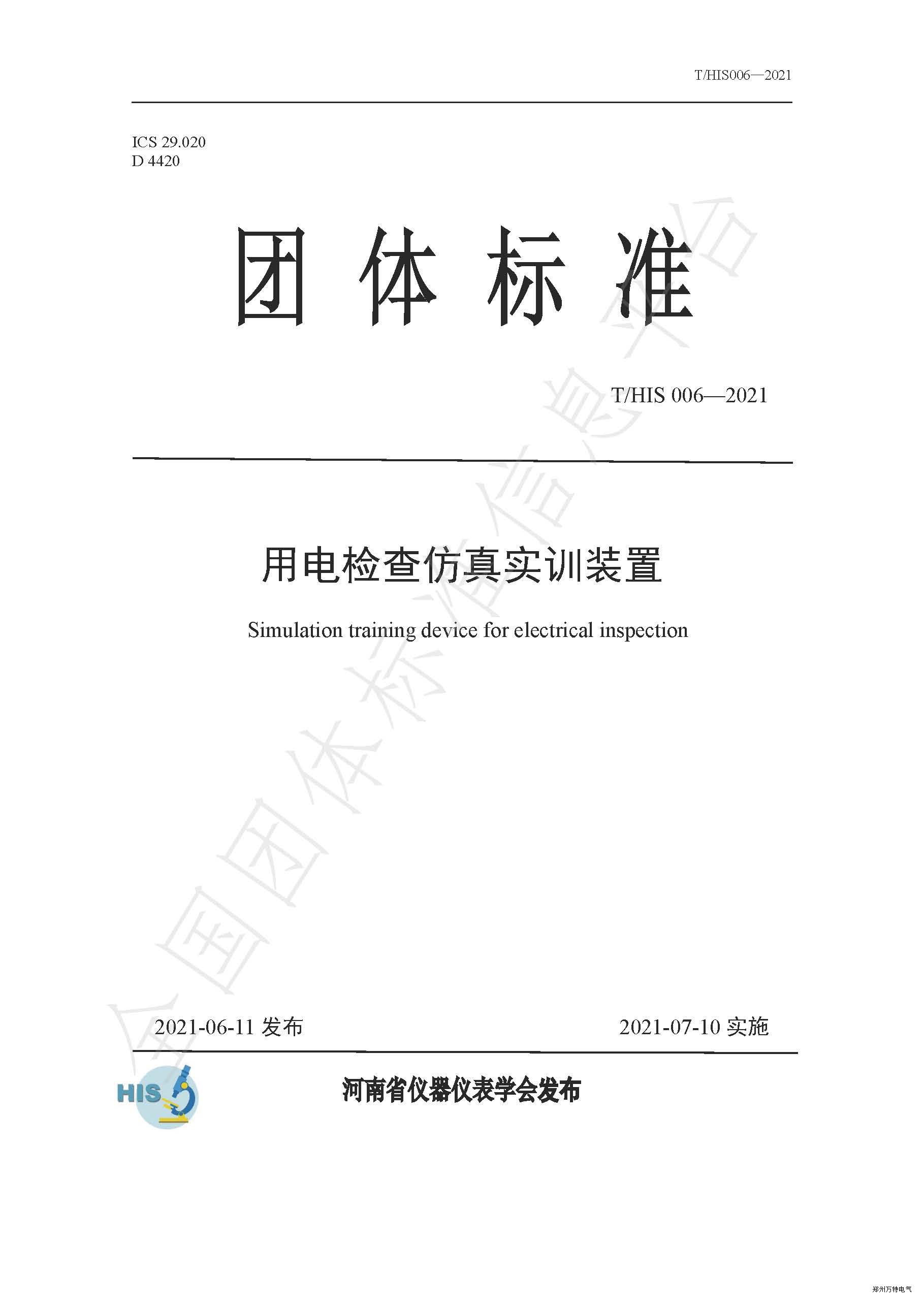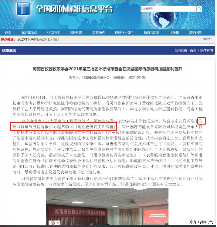 近日,由萬特電氣制定的河南省儀器儀表學會團體標準《用電檢查仿真實訓裝置》T/HIS 006,于2021年6月11日發布,將于2021年7月10日實施。