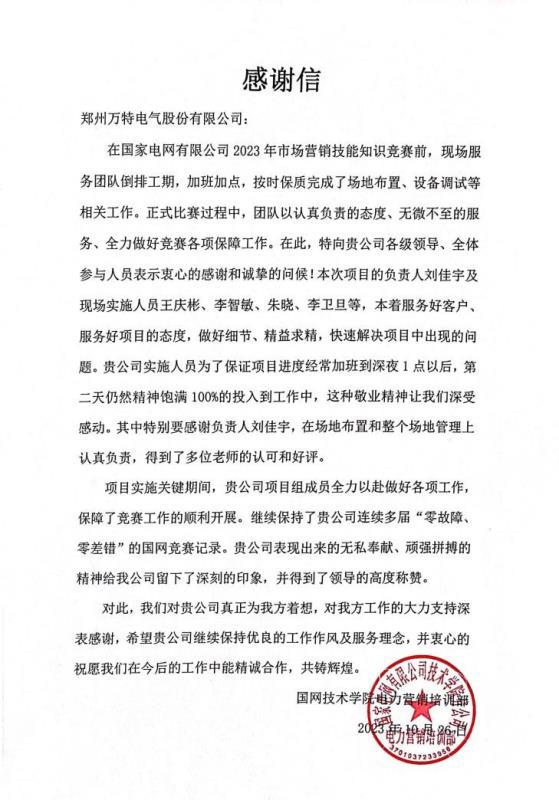 我公司助力國家電網公司2023年市場營銷技能知識競賽,繼續保持競賽用產品“零差錯、零故障”運行