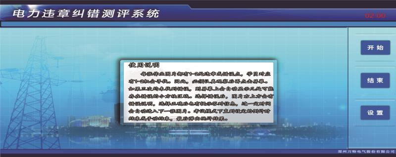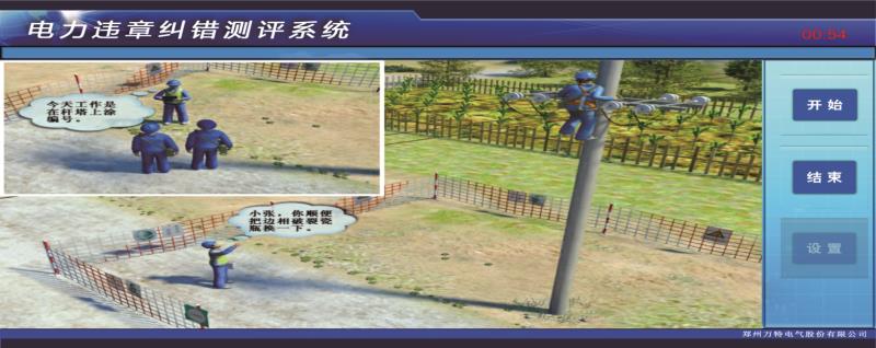 電力違章糾錯測評系統(tǒng)設計案例場景依據國家電網公司編寫的《國家電網公司安全生產違章 100條》,使用三維建模、全景圖片渲染等技術手段,重現作業(yè)現場畫面,在每個作業(yè)場景畫 面中預設習慣性違章隱患1-3個點,學員需在設定的時間內找出全部違章點,最后顯示正確率 或分值等。通過互動測試鍛煉學員的風險預控能力和反應能力,增強現場作業(yè)安全防護意識, 提高安全作業(yè)技能。